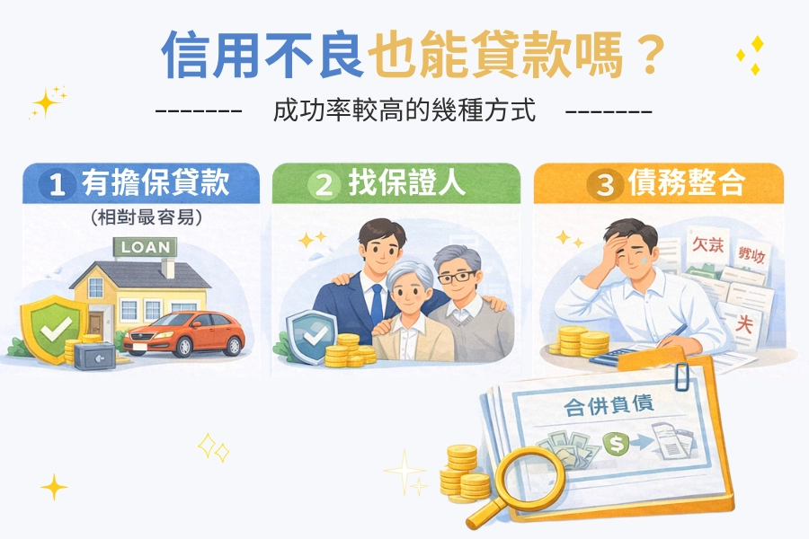 你目前信用狀況不佳嗎?並不是完全沒有機會申請貸款!重點在於選擇適合的方式,以下幾種情況通常成功率會相對較高: